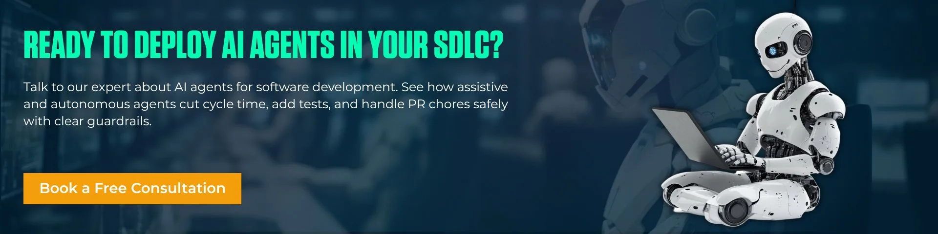 In this guide, we explain what AI agents in software development are, how they work, where they help, and how to adopt them without risking your codebase. We also walk through how to pick an AI agent development company if you prefer help over building alone. The goal is simple. After reading, you will know where to start and how to measure results with plain numbers.