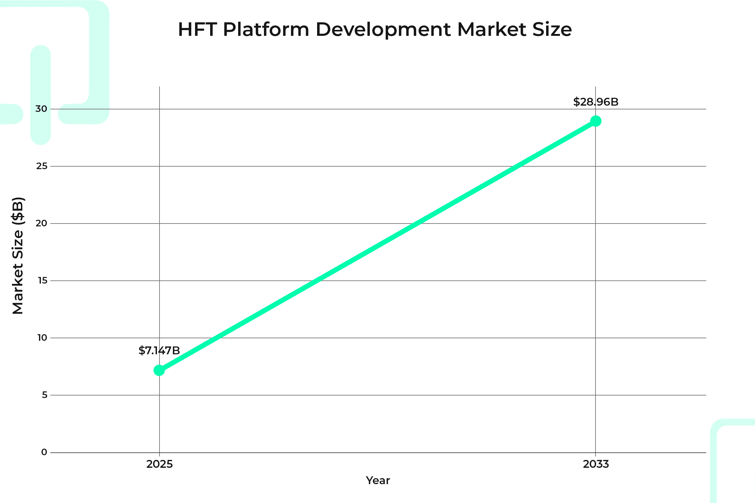 HFT platform development has grown into a $7.147 billion market in 2025, and it's racing toward $ 28.96 billion by 2033. However, anyone who has worked in high frequency trading platform development knows that raw market size means nothing if your low latency trading platform can't execute trades before your competitors even process the market data.