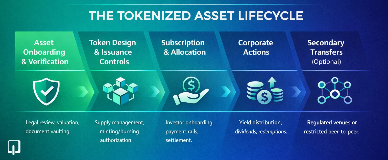 Real assets evolve over time. A platform should support issuance and provide operational capability. Corporate actions such as yield distribution, dividends, redemptions, and buybacks are expected parts of asset management.