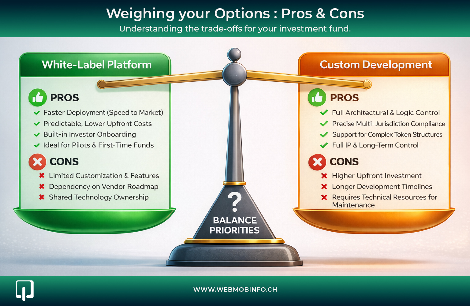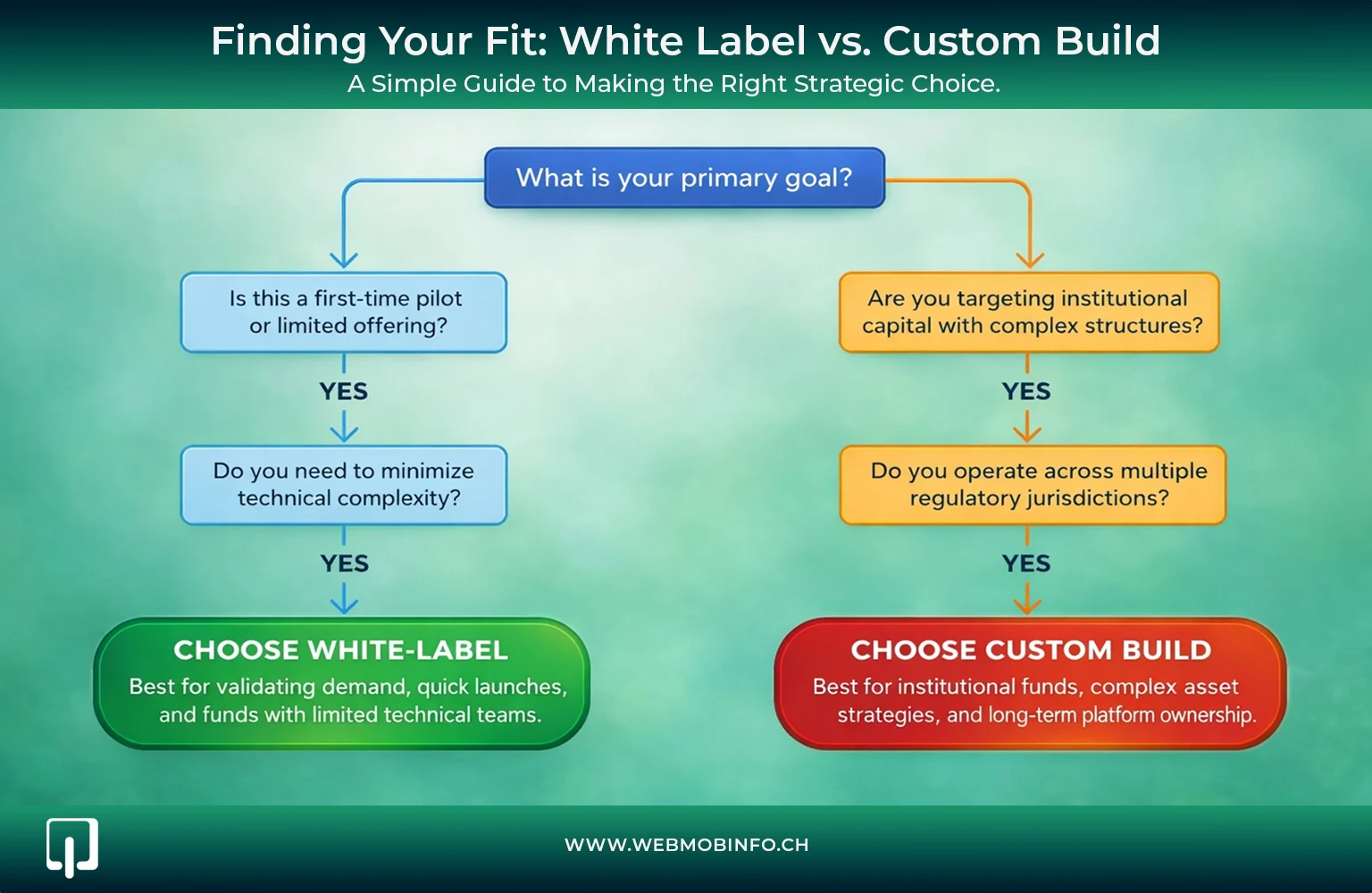White-label platforms are well-suited for quick launches and test funds. Custom builds suit institutional and multi-region funds with complex requirements.